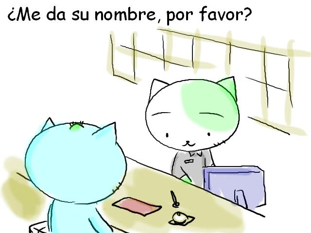 「お名前をいただけますか?」 (メダス ノンブレ ポルファボール?)